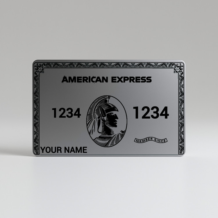 کارت بانکی فلزی طرح امریکن اکسپرس با چاپ اطلاعات شخصی در پشت کارت