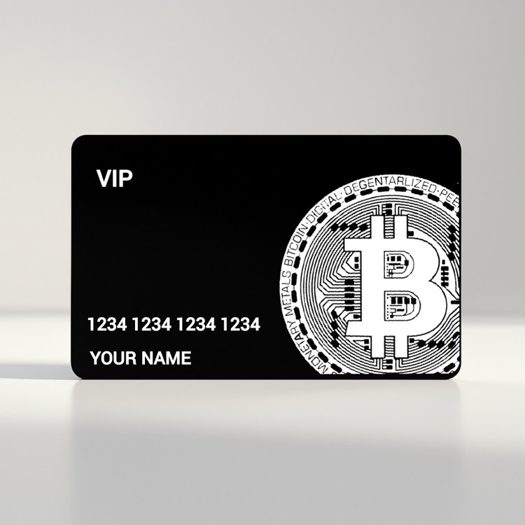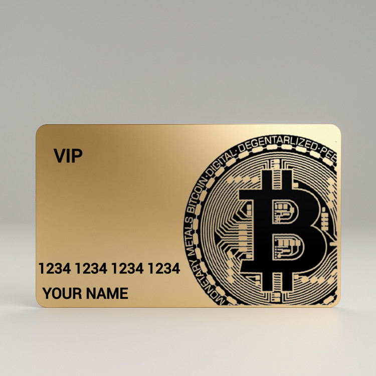 کارت بانکی فلزی طرح بیت کوین ۴ با چاپ اطلاعات شخصی