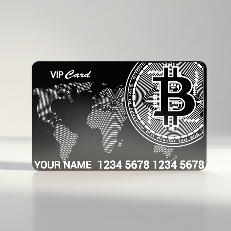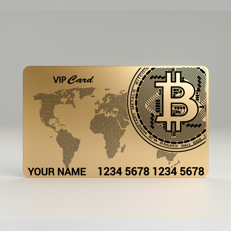 کارت بانکی فلزی طرح بیت کوین ۳ با چاپ اطلاعات شخصی